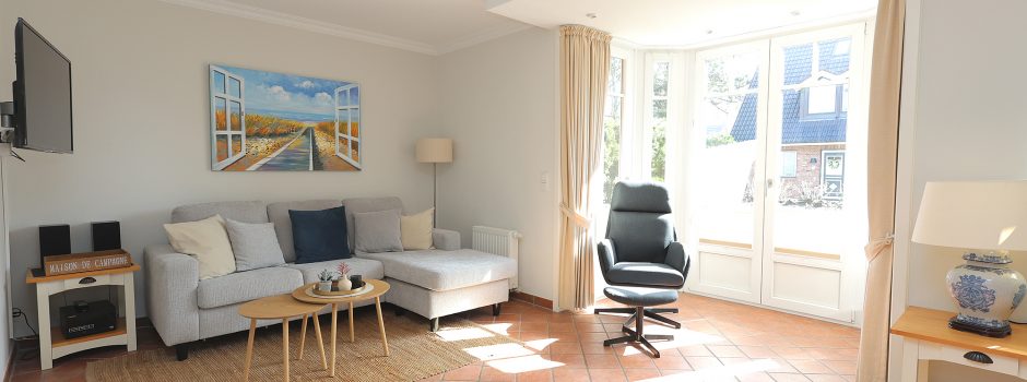 Diese schöne 2 Zimmerwohnung ca. 50qm für 1-2 Personen liegt ruhig und dennoch zentral und strandnah im Süden Westerlands. Die Wohnung verfügt über eine Wohnzimmer mit Sitzgruppe und Esstischgruppe, LED TV, Radio/CD, Zugang zur Südterrasse mit Strandkorb und Gartenmöbeln, eine separate Kochküche mit 4 Platten Ceranfeld, Mikrowelle, Spülmaschine etc., ein Schlafzimmer mit Doppelbett und großen Kleiderschrank, ein modernes Duschbad mit Waschmaschine. Hier steht Ihnen ein kostenloser Internetzugang WLAN zur Verfügung ! Ebenfalls ist hier ein kostenlos nutzbarer Pkw-Stellplatz vorhanden.