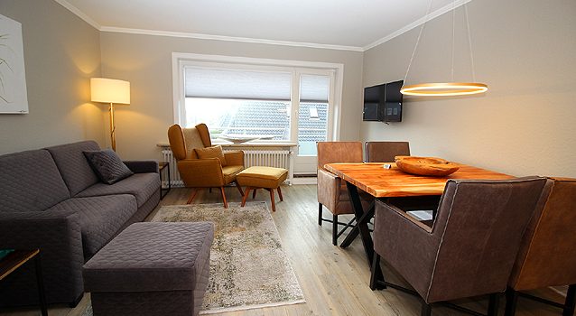 Diese neu renovierte und neu eingerichtete 2-Zimmer Erdgeschosswohnung für 1-2 Personen liegt ruhig, dennoch recht zentral in Alt-Westerland. Die Wohnung verfügt über ein Wohnzimmer mit voll ausgestatteter Küchenzeile, LCD TV, Sitz- und Esstischgruppe, Zugang zur Südterrasse, ein Duschbad und ein Schlafzimmer mit Doppelbett. Hier steht Ihnen ein kostenloser Internetzugang WLAN zur Verfügung !
