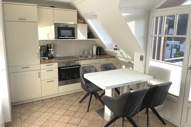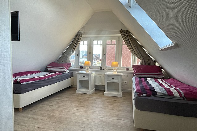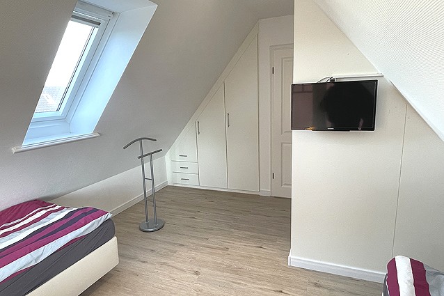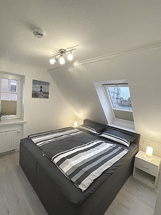 Diese schöne 3 Zimmer Obergeschosswohnung über 2 Ebenen mit separaten Eingang für 1-4 Personen verfügt über einen Wohnraum mit Sitzgruppe, Flachbild TV, DVD-Player, Zugang zum Südbalkon, mit voll ausgestatteter Küchenzeile; einem Duschbad mit Waschmaschine, einem Schlafzimmer mit Doppelbett und TV; im 2.OG über ein weiteren Schlafraum. Kfz-Stellplatz direkt am Haus. Hier darf kein Haustier mit !